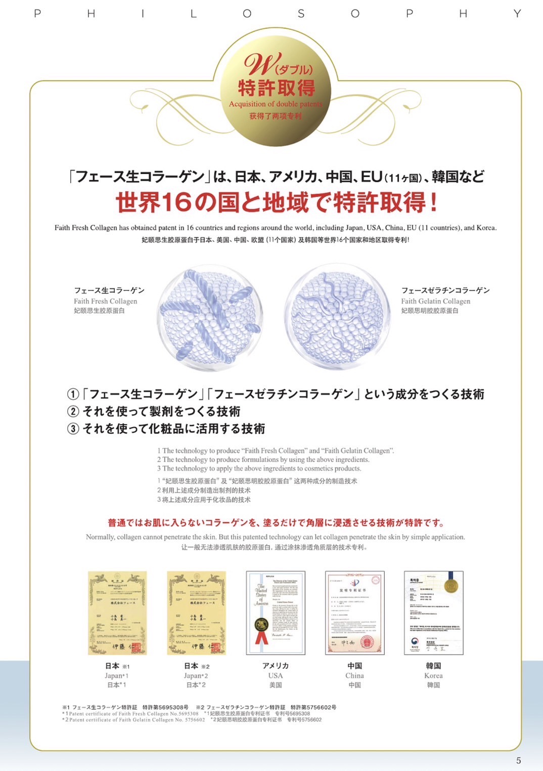 世界特許を取ってる商品を使用し
