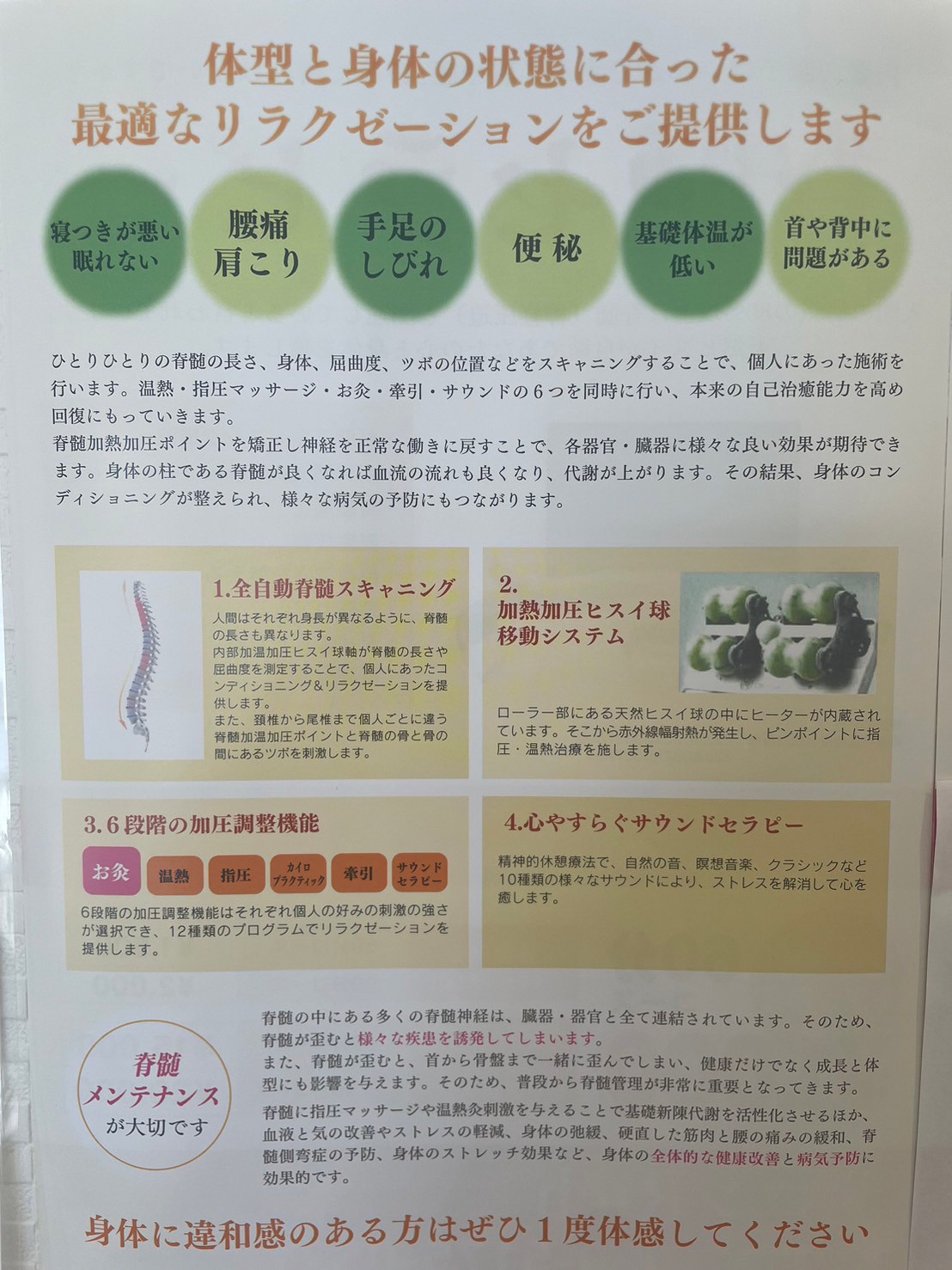 | ジャンル | リラクゼーション・脊髄セラピー |