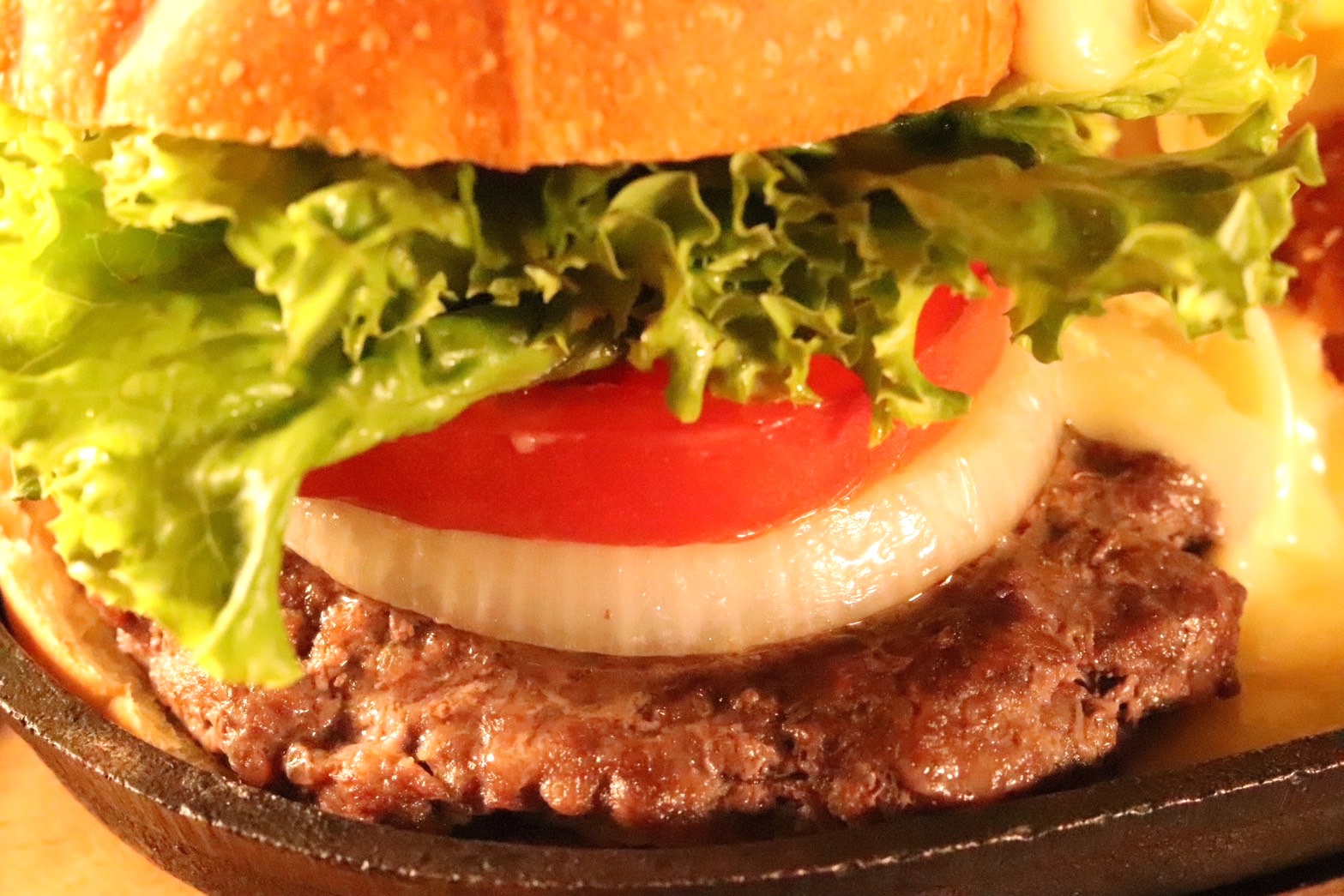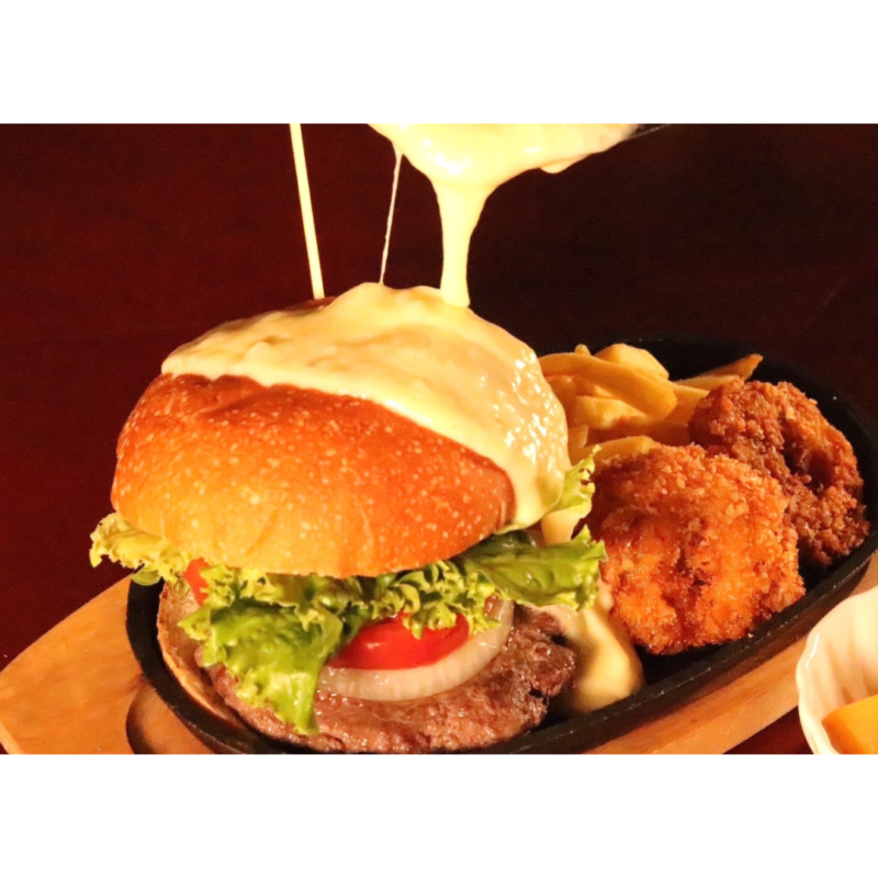 ボリュームたっぷりのハンバーガー