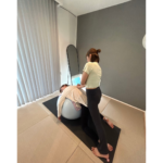 バランスボールに乗りながら施術する