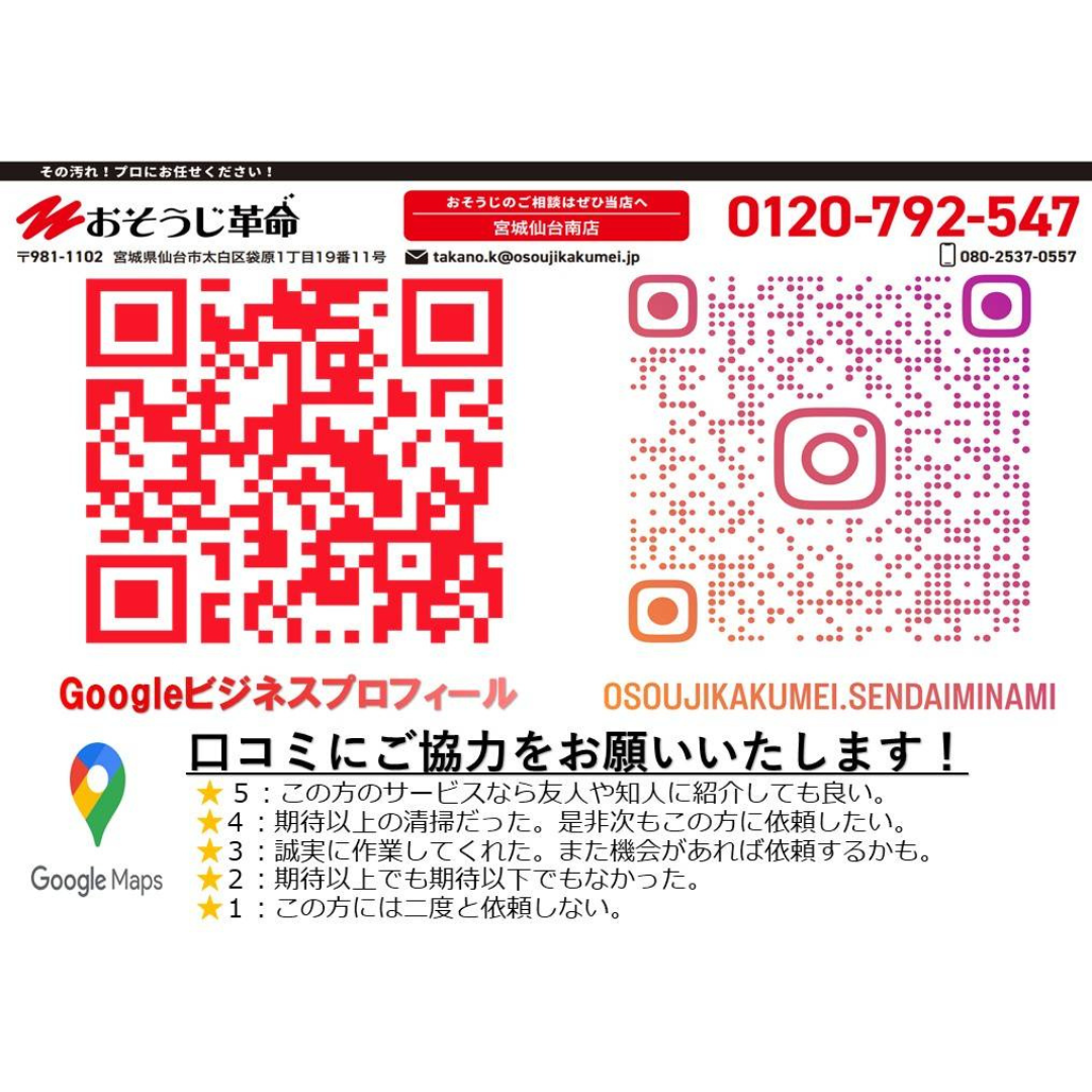 | 店名 | おそうじ革命 宮城仙台南店 |
