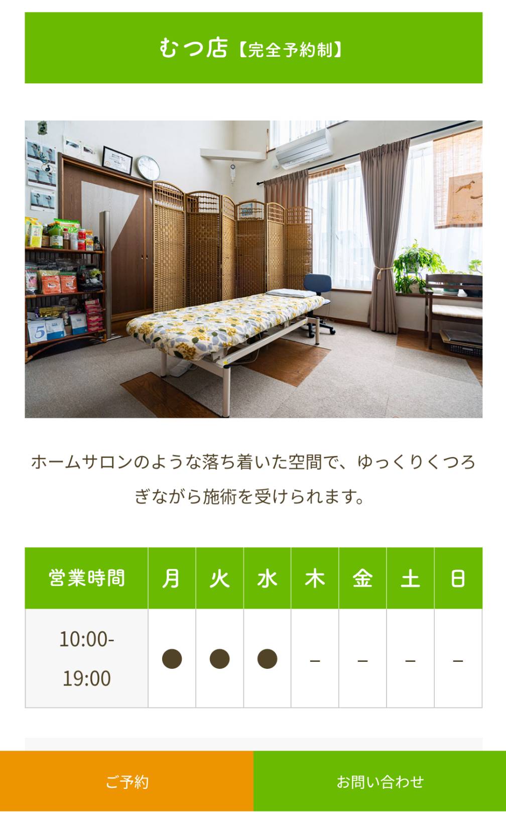 | 予約可否 | 完全予約制 |