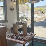 店内からは電車が見えて