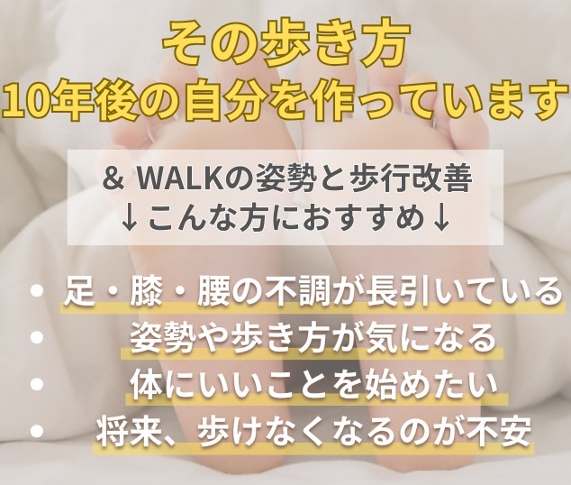 今から歩き方を整えましょう!