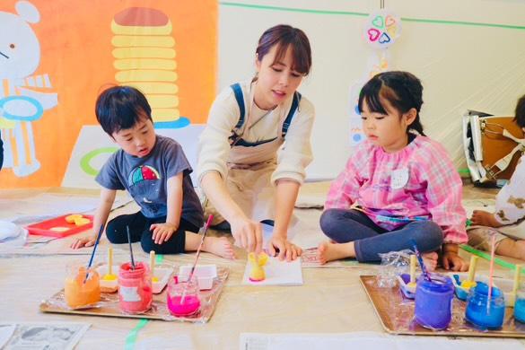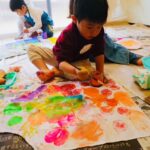 絵の具を使った親子遊びアート教室です🎨