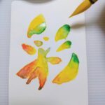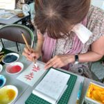 顔彩や筆を使い、