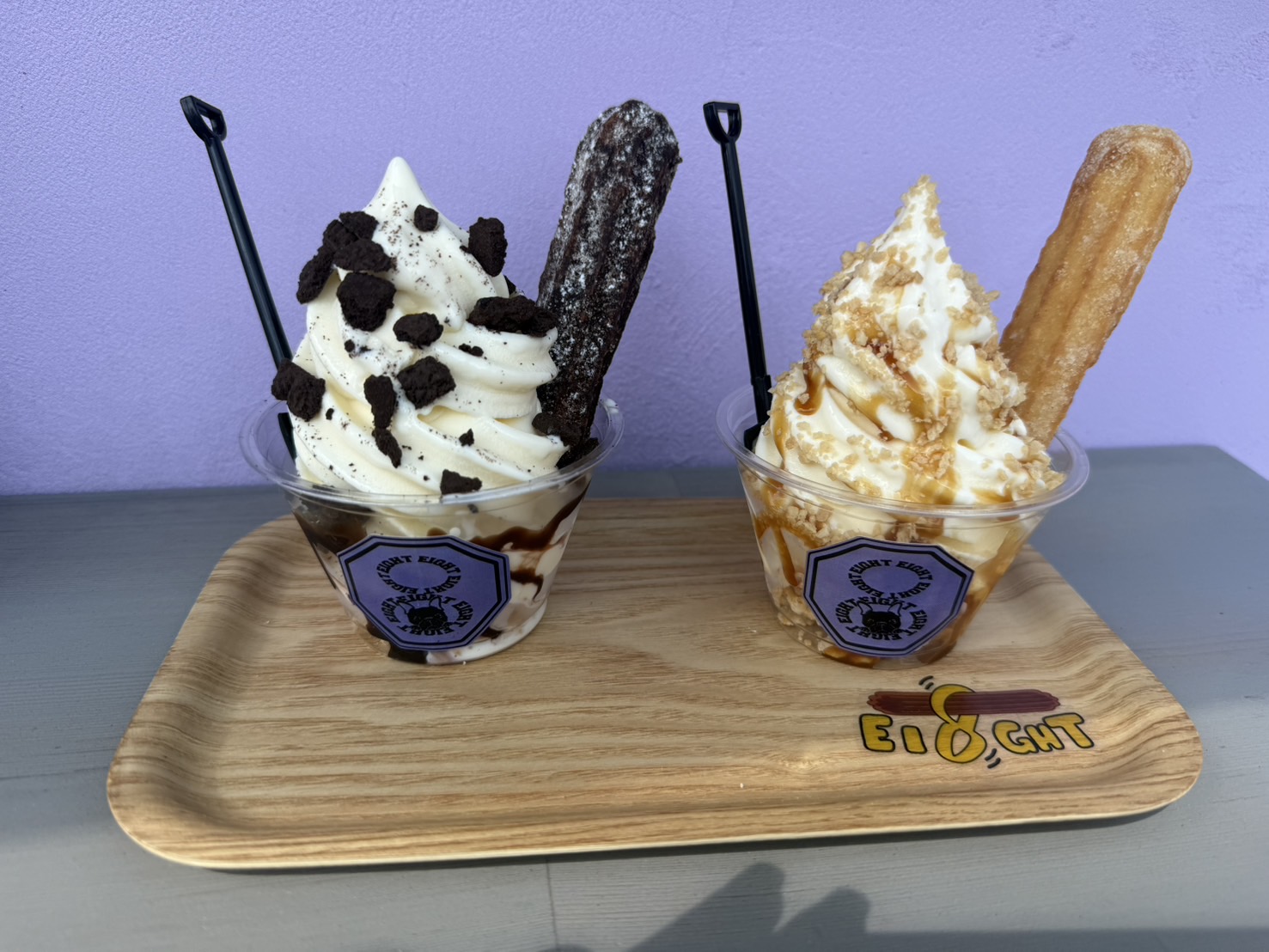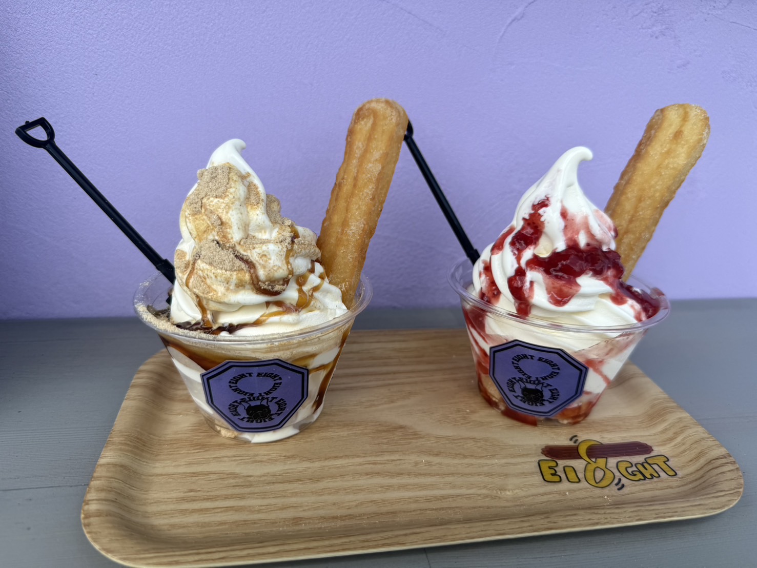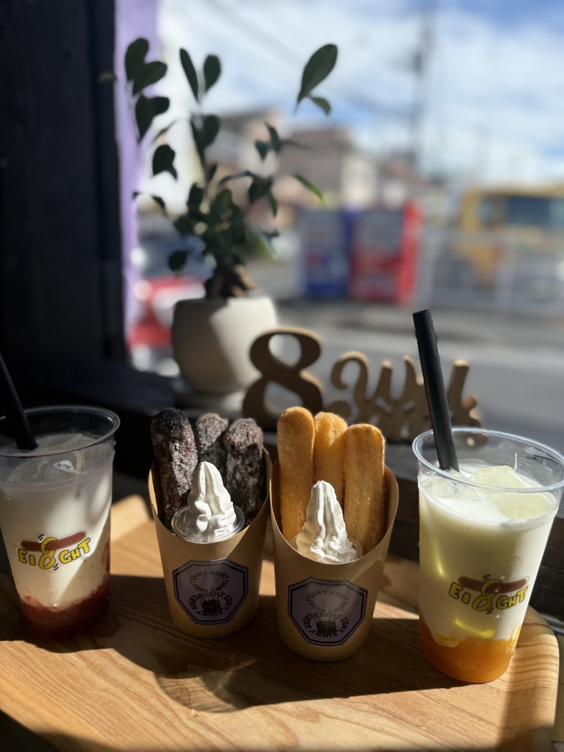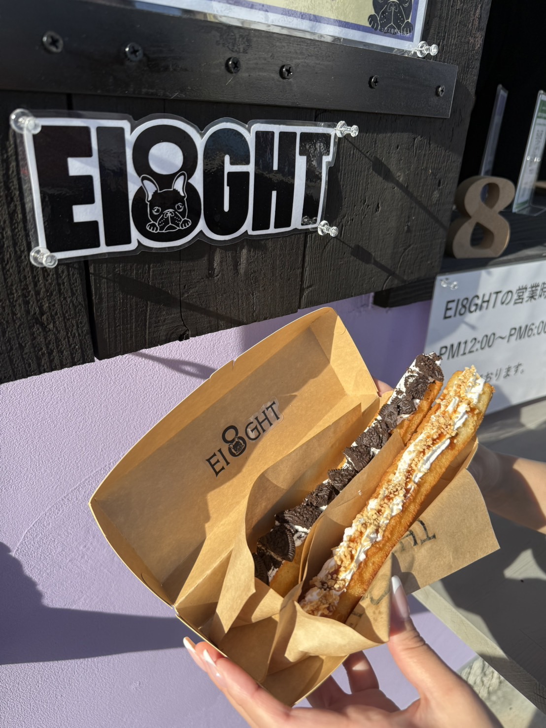 「EI8GHT」のチュロスを片手に