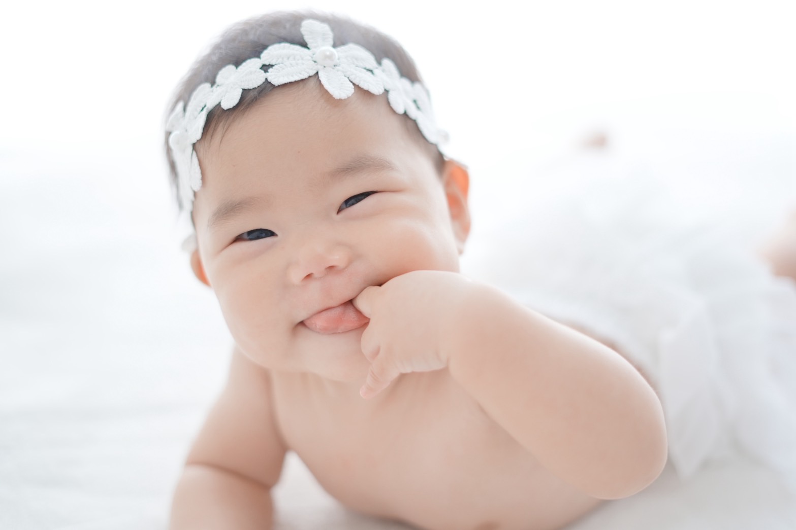 赤ちゃんの気持ちよさそうな表情を