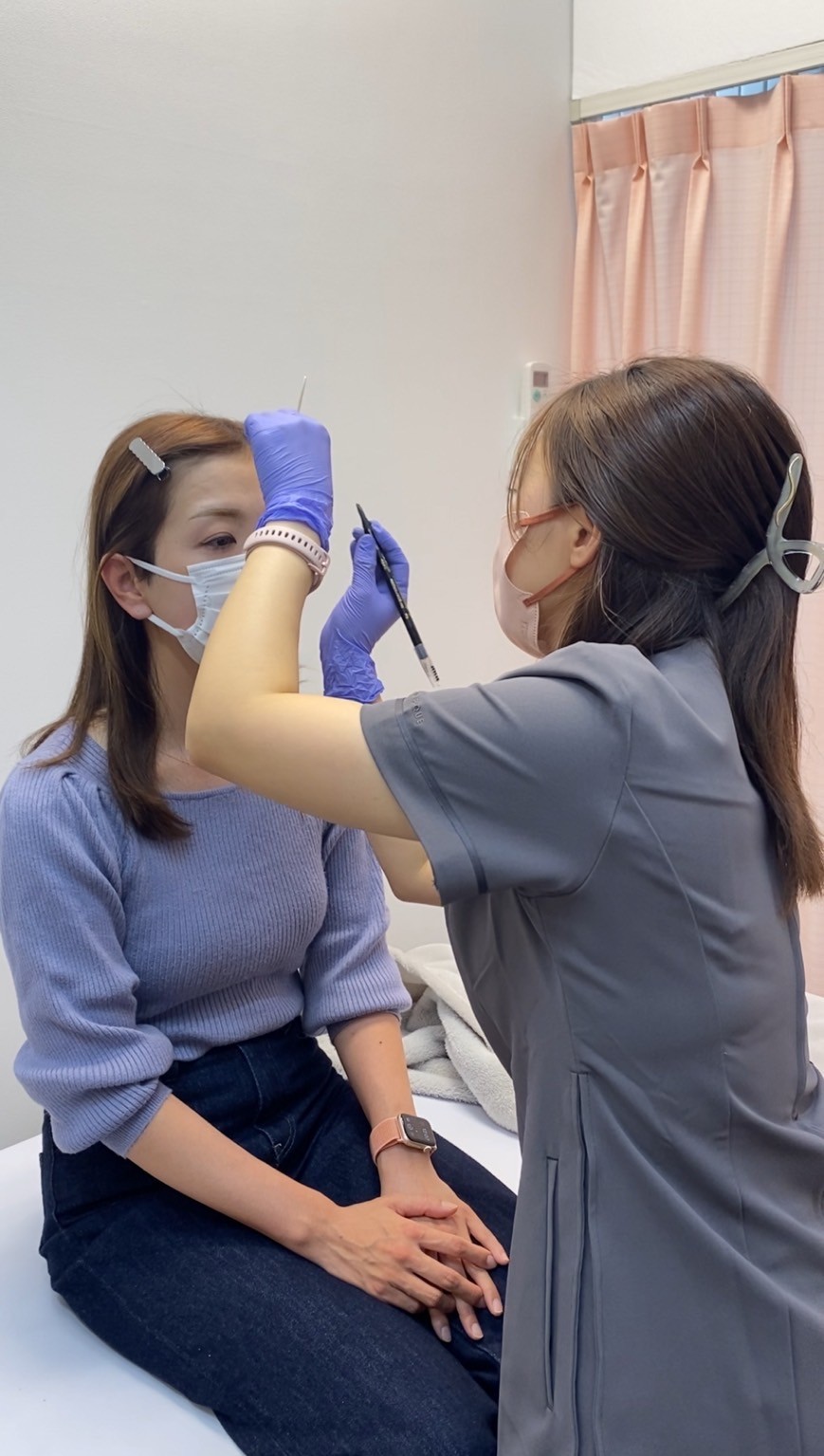 クリニックの個室で、
