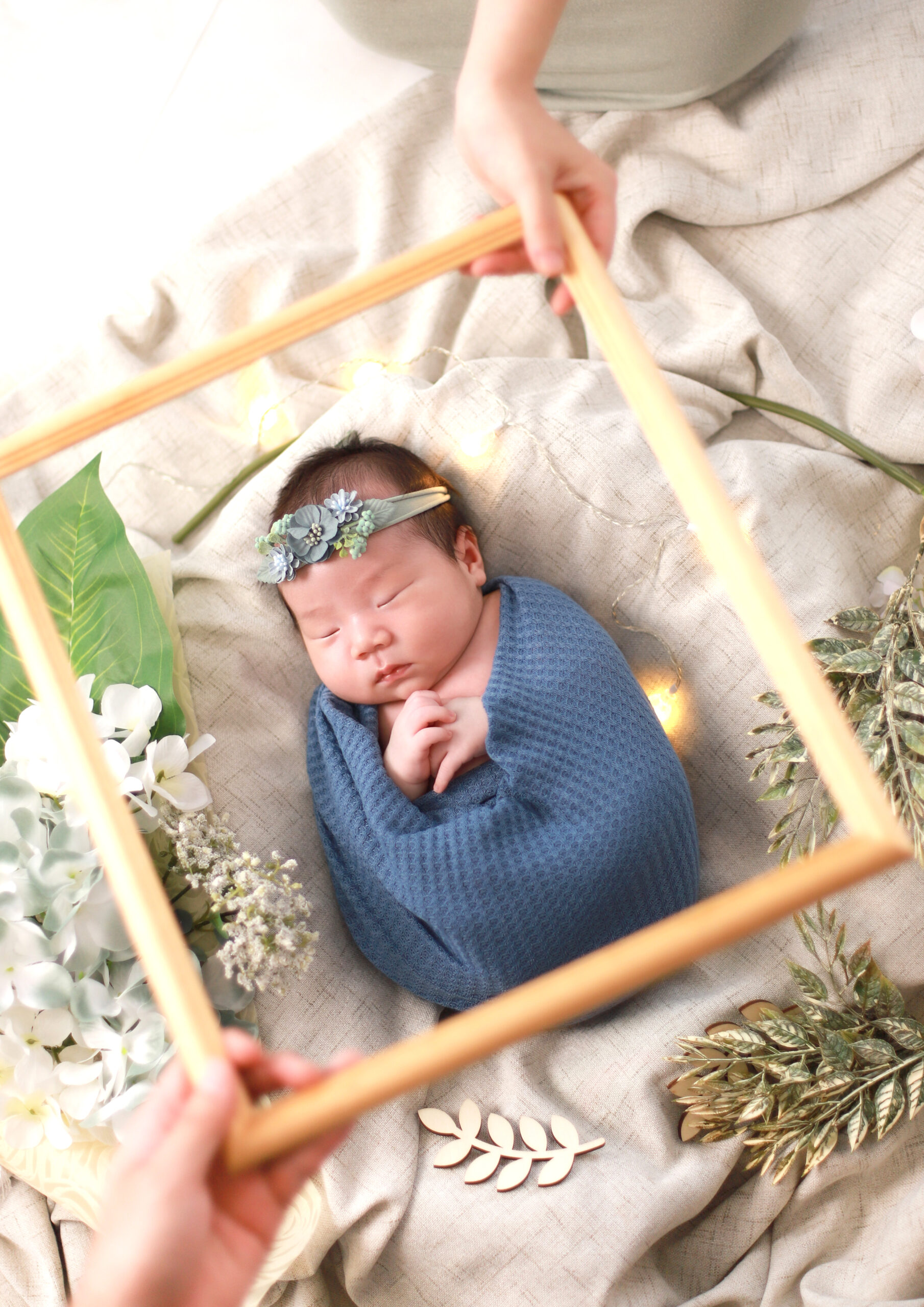 スタジオでは小物を使ったポーズ写真、