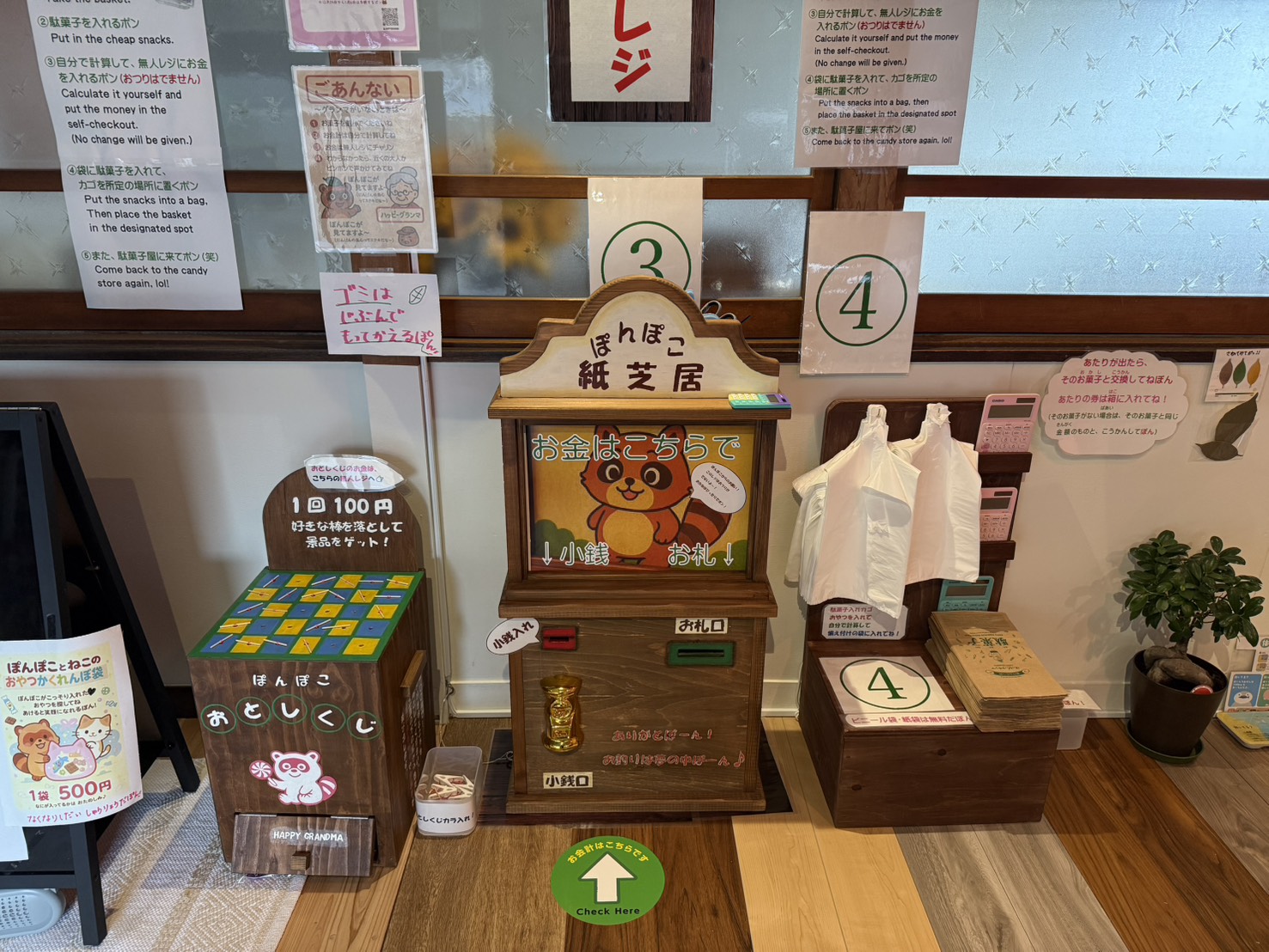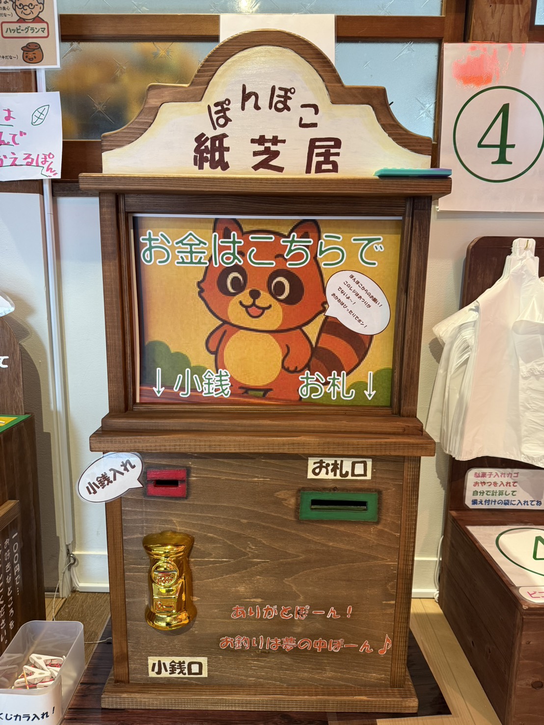 無人レジは、店主お琴さんの手作り。