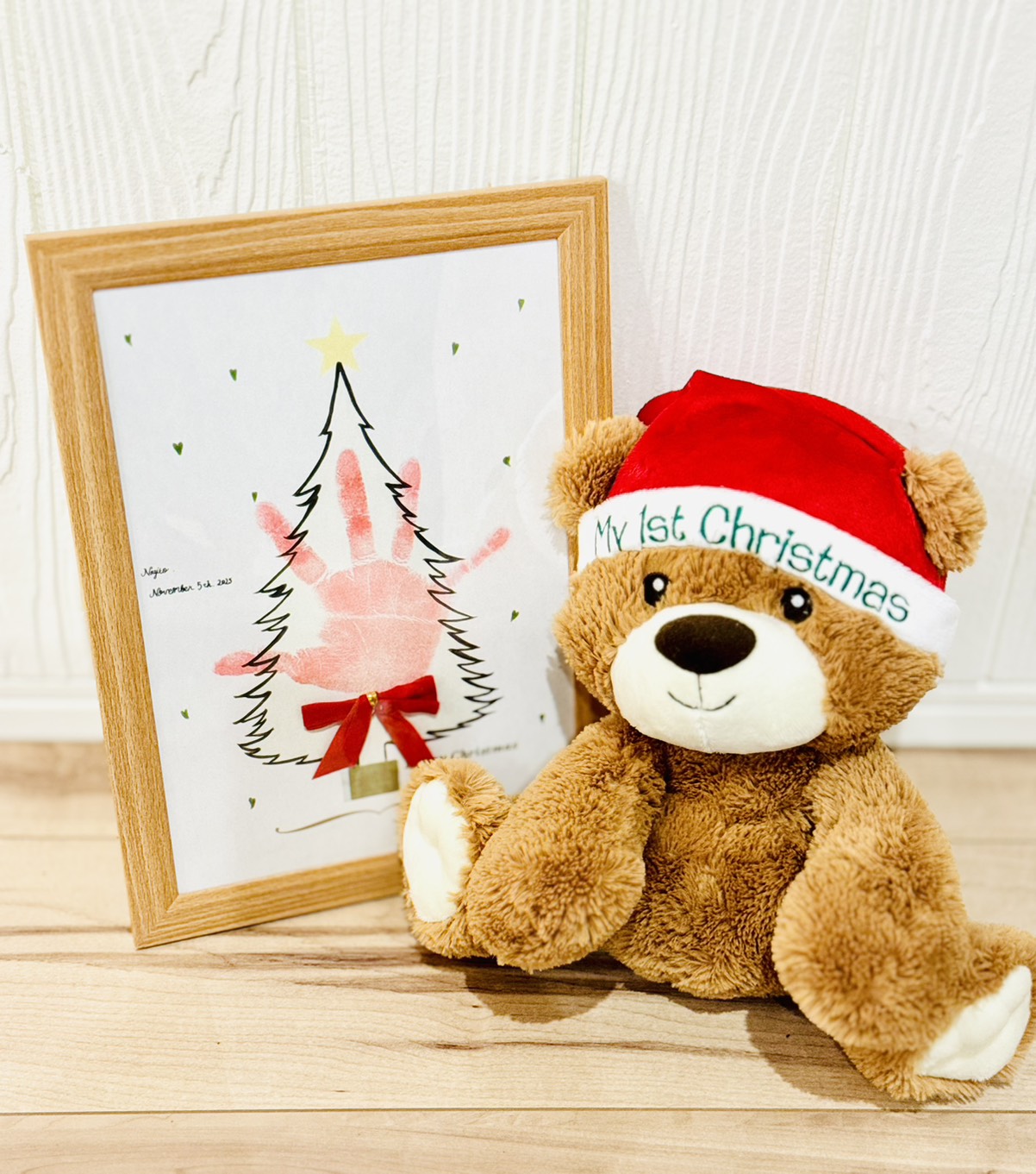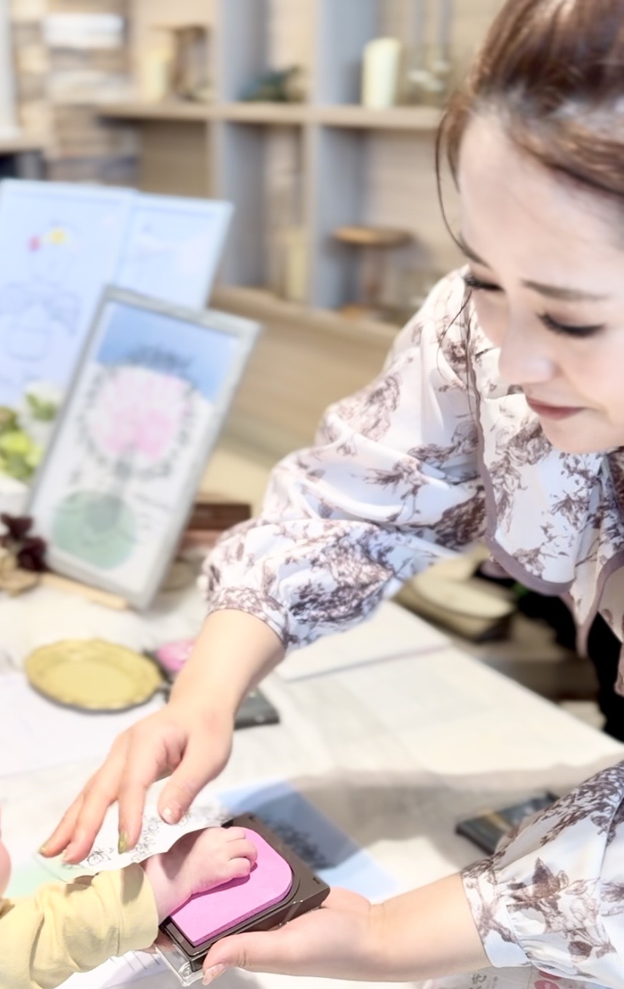 親子で一緒に、手形スタンプを