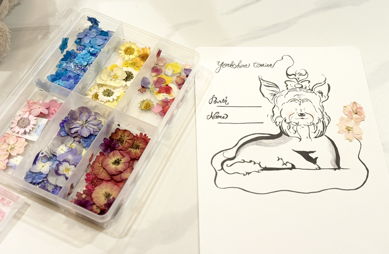 押し花や、ドライフラワーを用いて、