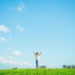 撮影中の空や植物、