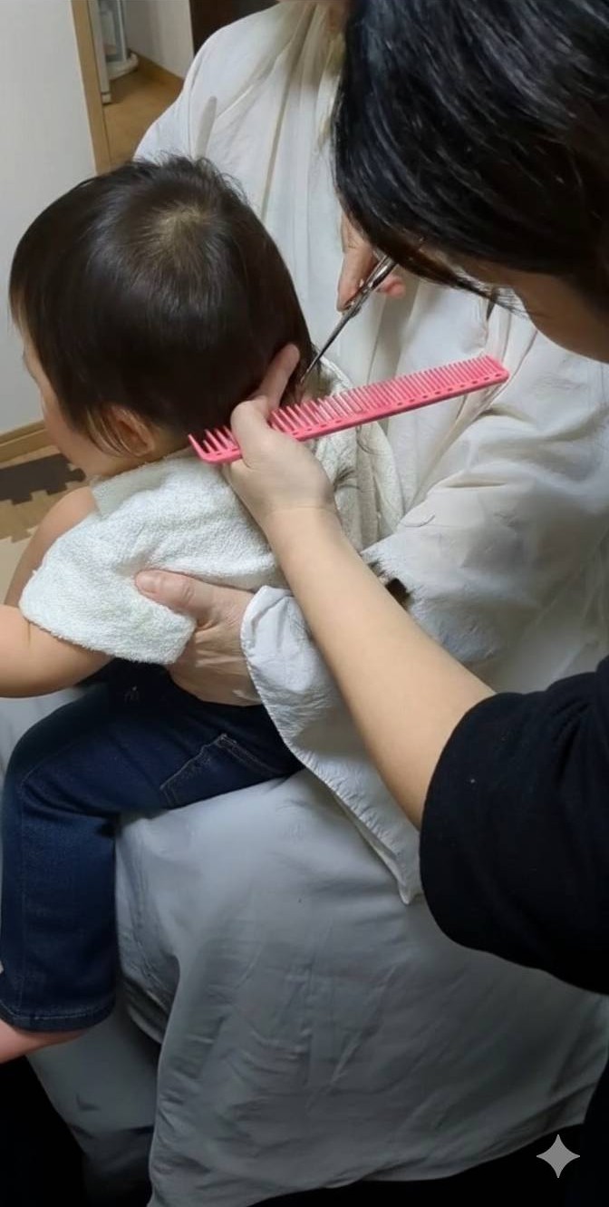 保育士が訪問して、髪をカットしたら