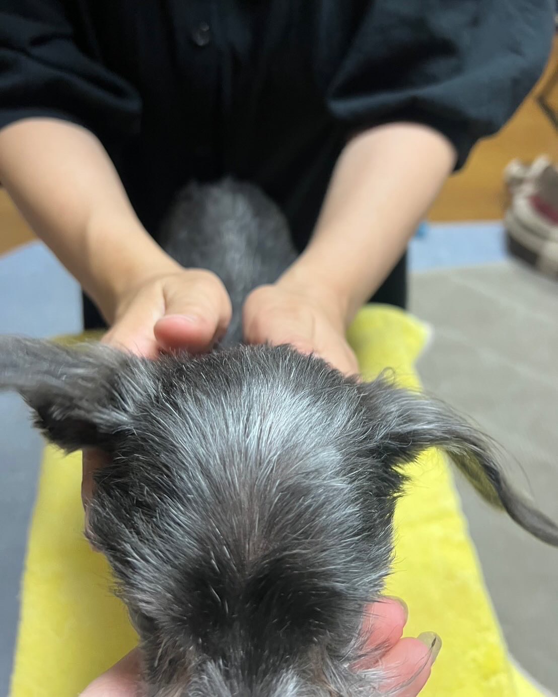 飼い主さんの手で優しく触れる