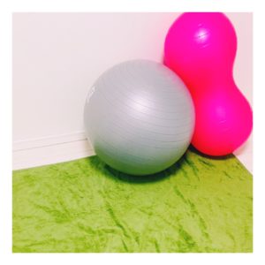 バランスボールに伏せた状態で