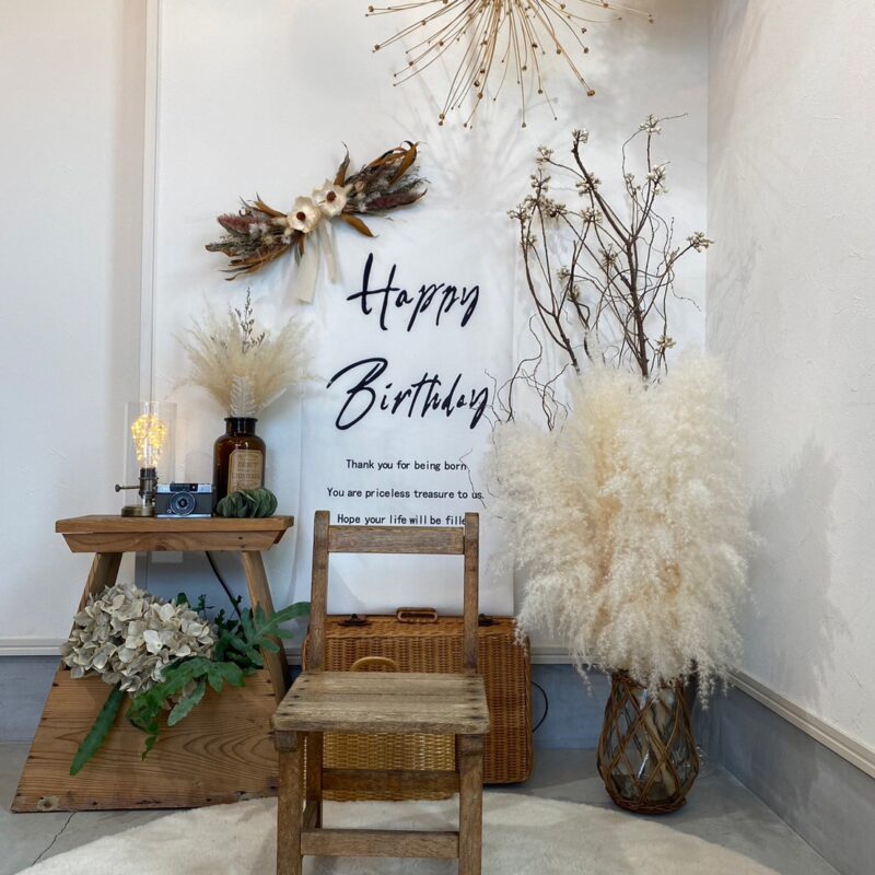 お店のドライフラワーを使ったフォトスペースで