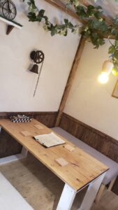 | 客席 | テーブル7席 *4人掛け×3、 2人掛け×4、木箱のような半個室 |